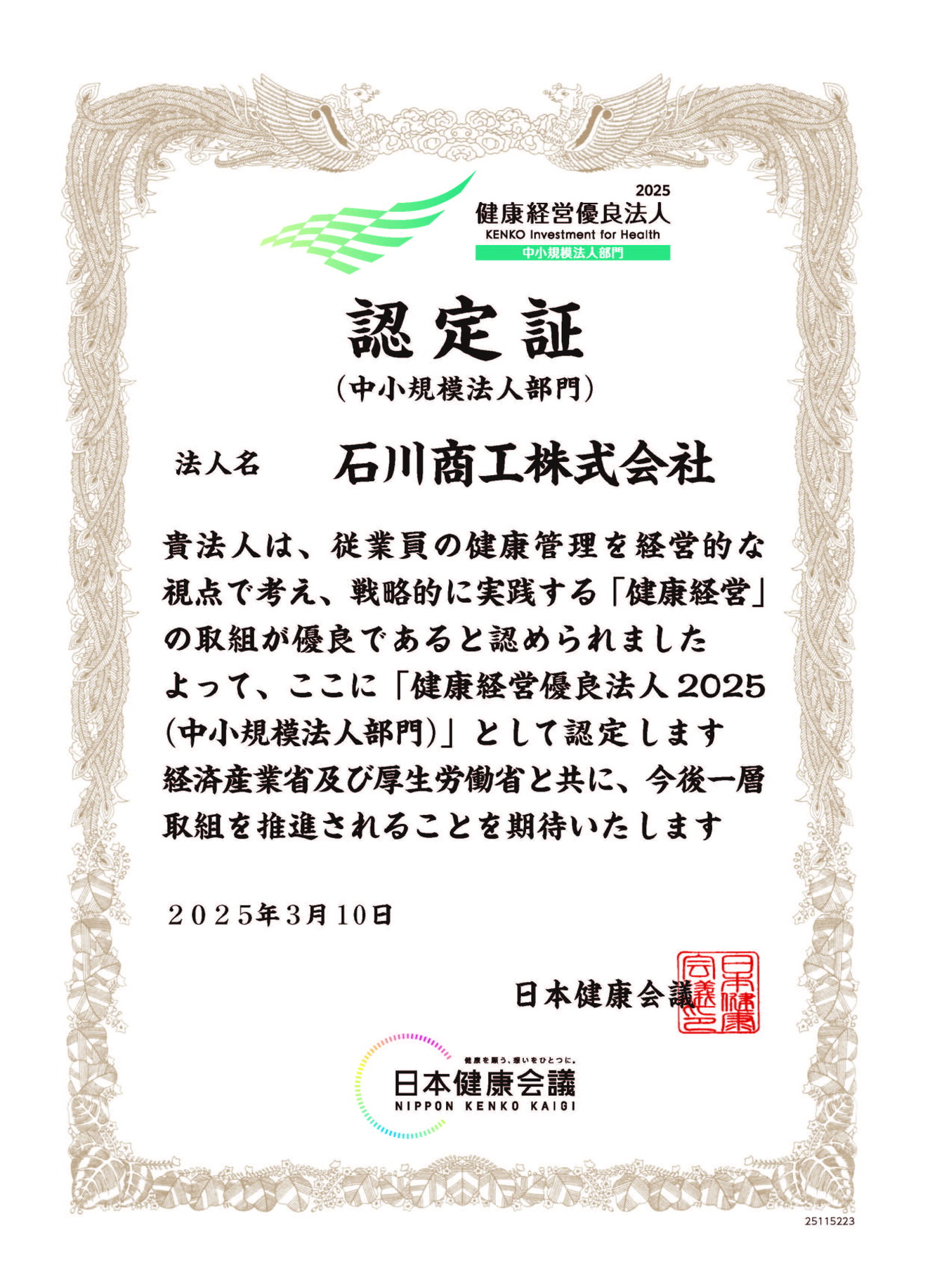 「健康経営優良法人2025(中小規模法人部門)」として認定されました。